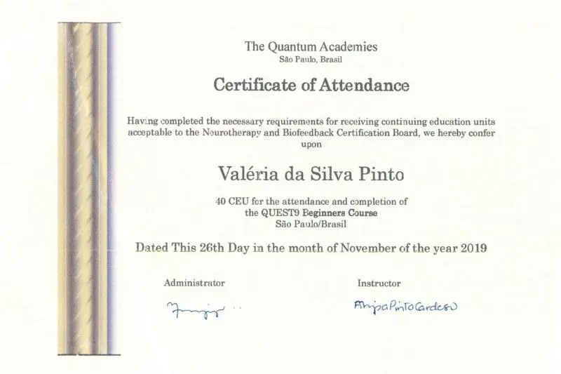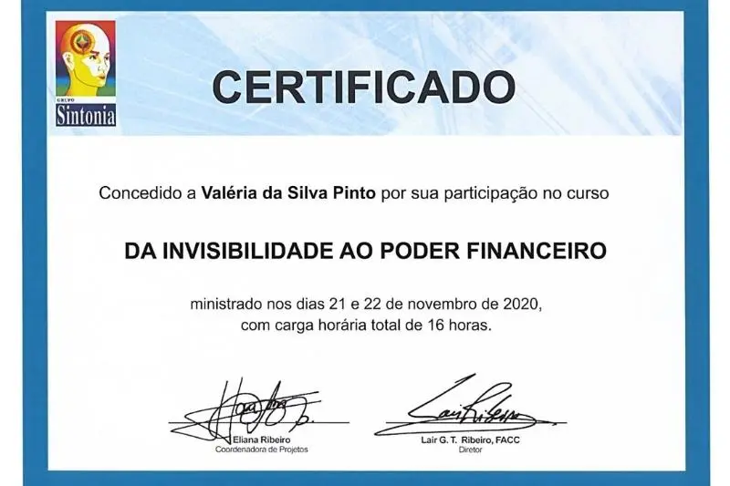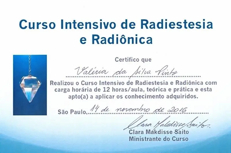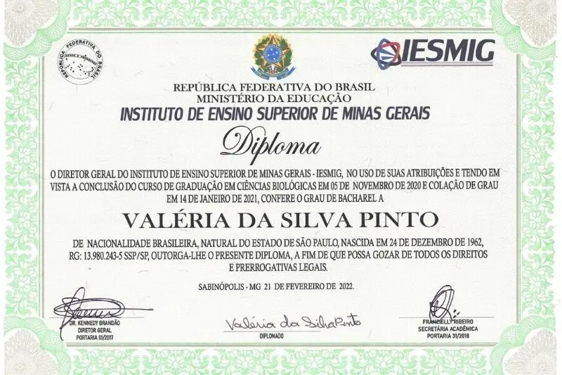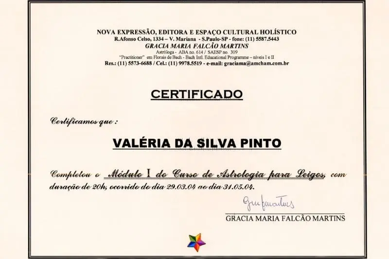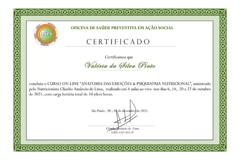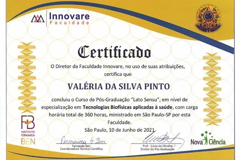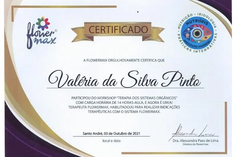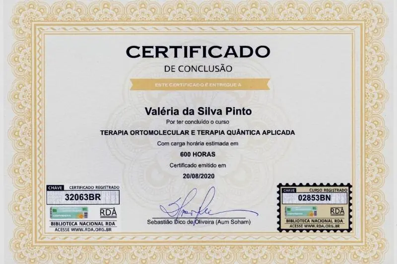 Valéria exibe com orgulho as certificações que comprovam sua formação e experiência